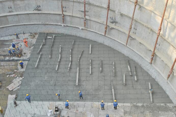 2014年12月31日23時13分,歷經(jīng)五晝夜、六次分段澆筑,洞庭湖大橋A1標錨碇基坑封底3000方混凝土澆筑完成,比計劃工期提前了半個月,標志著錨碇施工取得了決定性勝利。