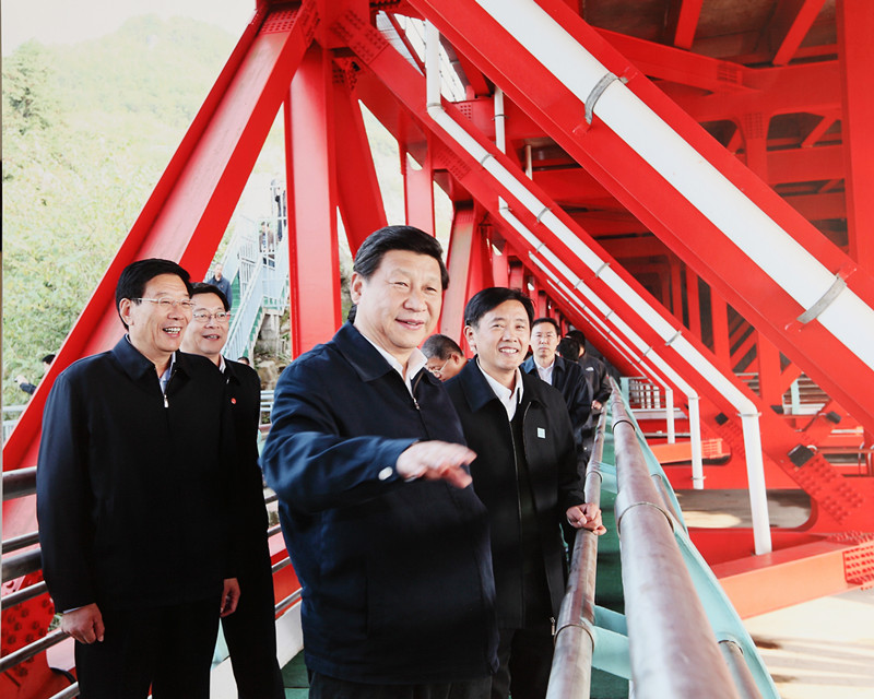 中央兩家重量級(jí)媒體《人民日?qǐng)?bào)》、央視《新聞聯(lián)播》的連續(xù)報(bào)道是黨和國家領(lǐng)導(dǎo)人對(duì)集團(tuán)承建的矮寨大橋的肯定與褒獎(jiǎng)的延續(xù)。矮寨大橋在建和建成通車后,多位黨和國家領(lǐng)導(dǎo)人前往視察,讓我們?cè)俅沃販剡@些時(shí)刻:2011年6月,時(shí)任國家政協(xié)主席賈慶林視察矮寨大橋;2012年5月,時(shí)任國務(wù)院總理溫家寶視察矮寨大橋;2013年11月3日,習(xí)總書記在視察矮寨大橋時(shí)贊譽(yù):“月亮不僅僅是外國的圓,這就是中國的圓月亮!”