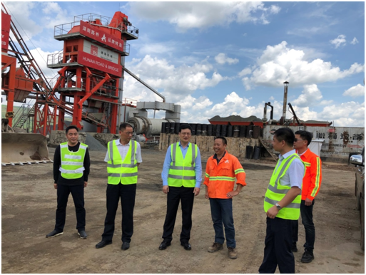 胡建華(左二)、楊宏偉(左三)考察盧旺達(dá)LOT2項(xiàng)目現(xiàn)場(chǎng)