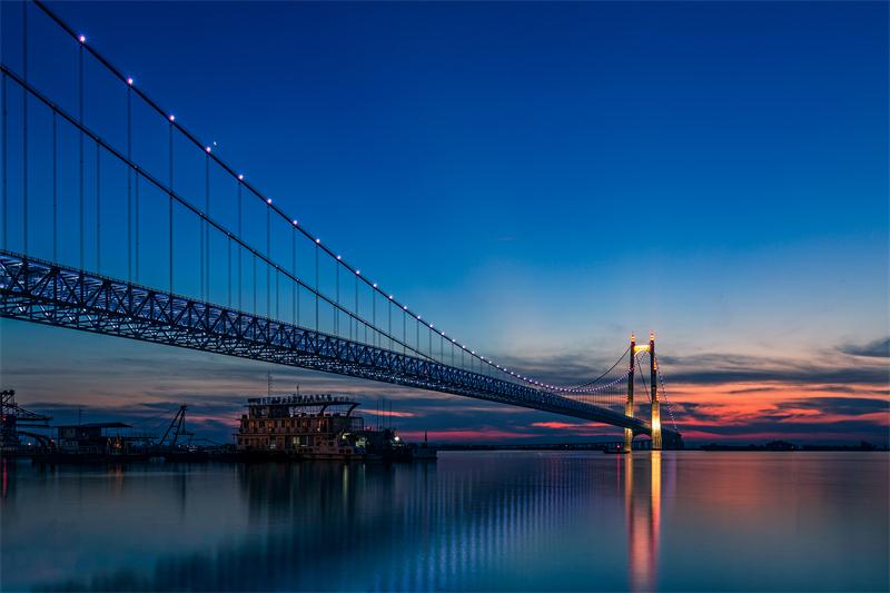 大岳高速洞庭湖大橋,懸索橋,主跨1480米,是世界第二大、國內(nèi)第一大“鋼桁梁懸索橋”,獲湖南省建設工程“芙蓉獎”。