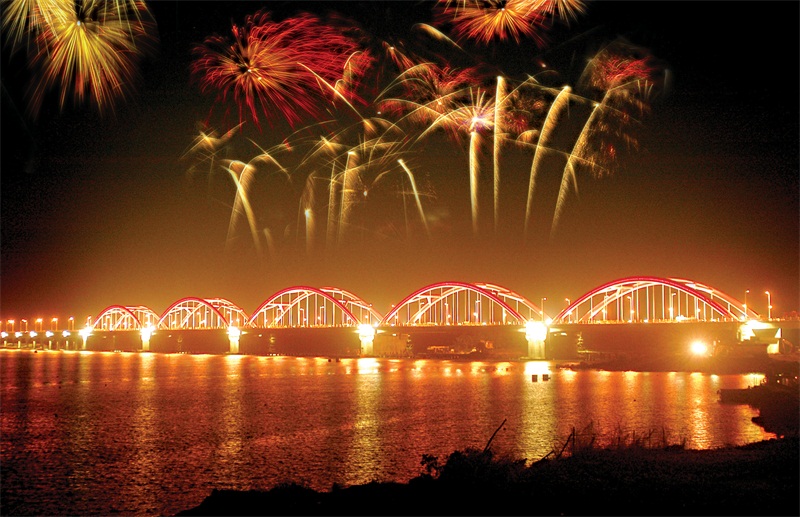 海南瓊州大橋,鋼管混凝土拱橋,2000年12月開工,2003年5月竣工,是當(dāng)時(shí)海南規(guī)模最大的公路橋梁。