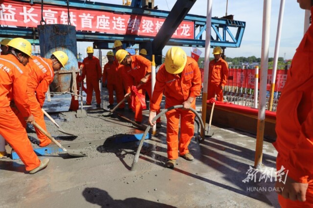 湖南日報·新湖南客戶端8月20日訊(記者 胡信松 通訊員 蘇美滋)今天上午,隨著最后一盤混凝土澆筑入模,由湖南路橋集團承建的常益長高鐵重點控制性工程——侍郎河特大橋連續(xù)梁橋成功合龍。這是常益長高鐵全線第一座合龍橋梁,為后續(xù)的架梁施工作業(yè)打通了關(guān)鍵控制點。