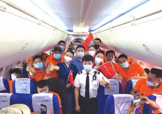 8 月 21 日,遠(yuǎn)赴格魯吉亞的湖南路橋員工與空中乘務(wù)員一起合影。圖 / 受訪者提供