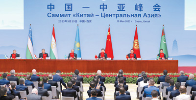 5月19日上午,國家主席習(xí)近平在陜西省西安市主持首屆中國—中亞峰會并發(fā)表題為《攜手建設(shè)守望相助、共同發(fā)展、普遍安全、世代友好的中國—中亞命運共同體》的主旨講話。哈薩克斯坦總統(tǒng)托卡耶夫、吉爾吉斯斯坦總統(tǒng)扎帕羅夫、塔吉克斯坦總統(tǒng)拉赫蒙、土庫曼斯坦總統(tǒng)別爾德穆哈梅多夫、烏茲別克斯坦總統(tǒng)米爾濟(jì)約耶夫出席。習(xí)近平同中亞五國元首簽署了《中國—中亞峰會西安宣言》,并通過《中國—中亞峰會成果清單》。 |